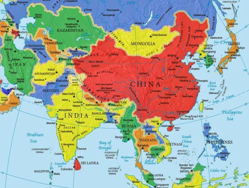 Detailed Asia Political Map In Mercator Projection Clearly Labeled Separated Layers Stock